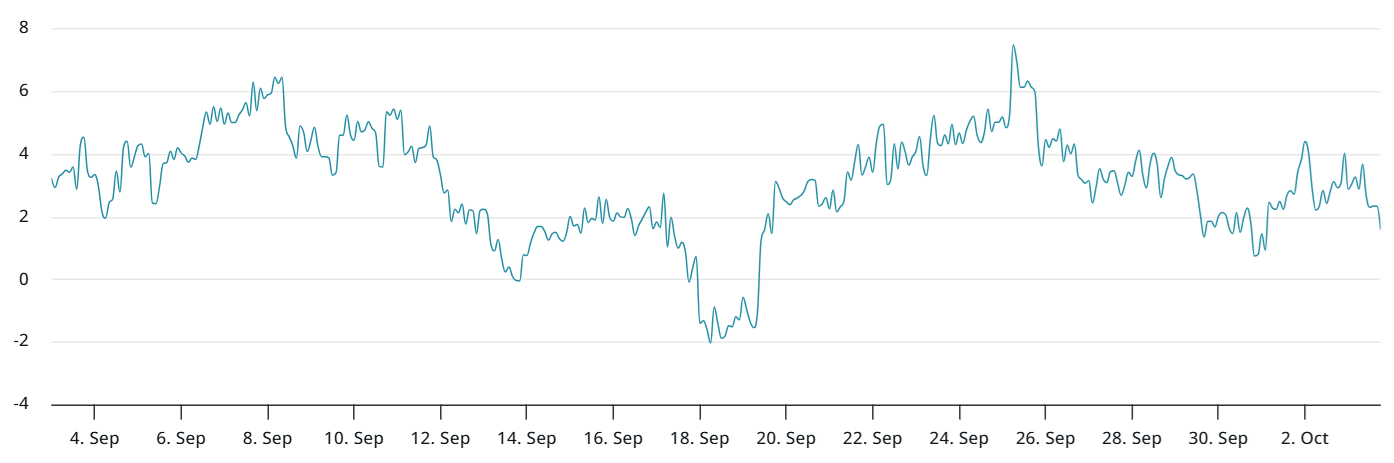 ETH aylık vadeli işlemleri, spot piyasalara göre yüzde 7 primle işlem görüyor. Bu oran, daha uzun vadeli uzlaşma sürelerini telafi eden yüzde 5 ila yüzde 10’luk nötr aralığın rahatlıkla içinde bulunuyor. Dikkat çekici olan, bu göstergenin şubat ayından beri yükseliş eğilimine girmemesi. 13 Ağustos’a kadar geçen altı haftada ETH’deki yüzde 100’lük ralli bile güven yaratmaya yetmedi.