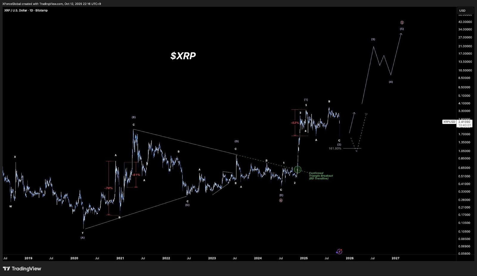 Elliott dalga analisti XForceGlobal da XRP’nin “makro ölçekte hala yükseliş eğiliminde” olduğunu söyledi.