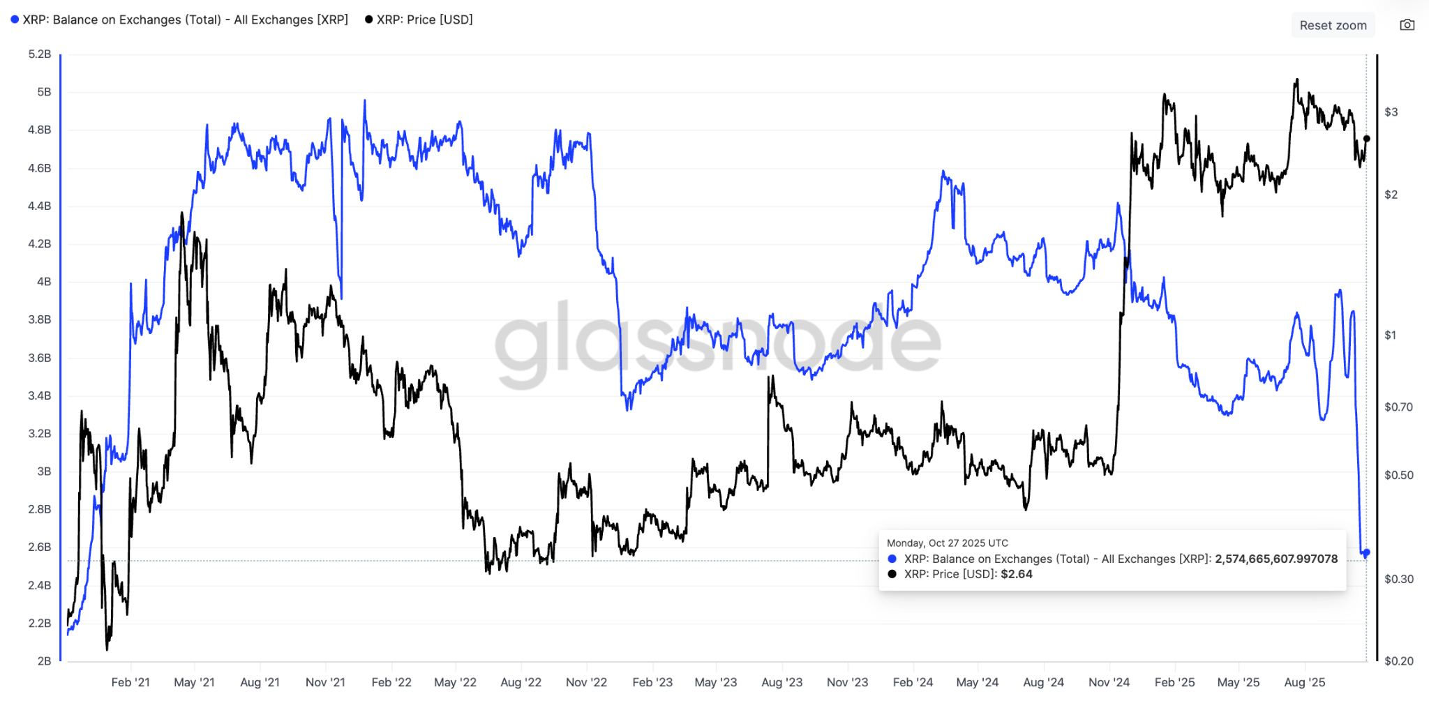 Glassnode verilerine göre, borsalardaki XRP arzı son 30 günde önemli ölçüde azaldı.