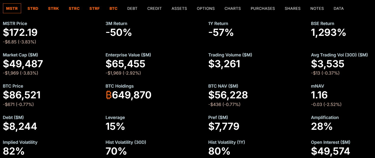 Strategy’nin mNAV dahil temel metrikleri. Kaynak: Strategy.com