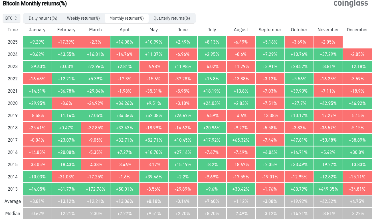 CoinGlass verileri, durumun ciddiyetini gösteriyor. 2013’ten bu yana kasım ayı ortalama kazançları yüzde 40’tan fazlaydı.