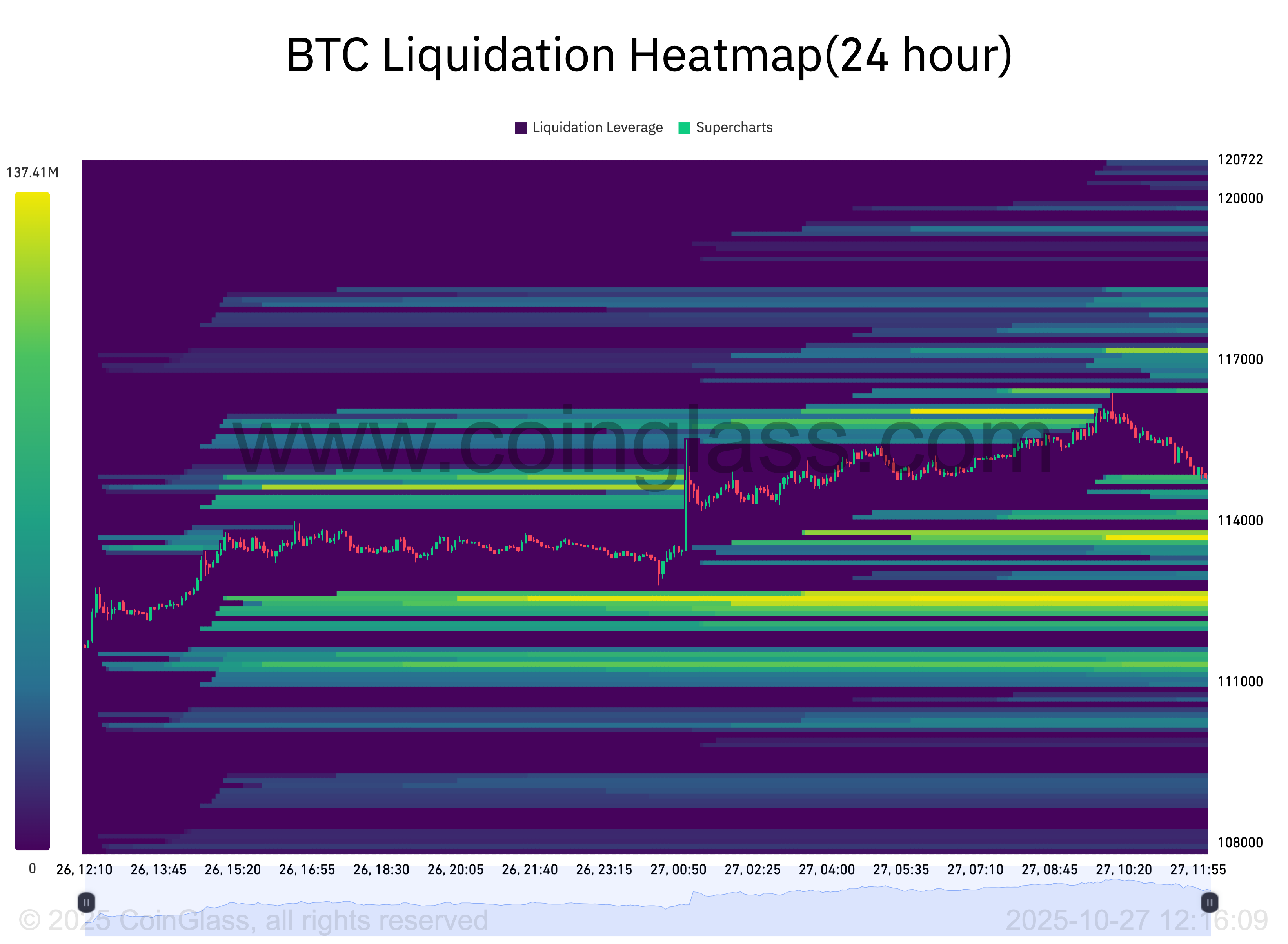 115.000 dolarda BTC/USD, ekim açılış seviyesinin yaklaşık yüzde 1 üzerinde bulunuyor ve böylece beklenmedik bir anda “kırmızı” bir ay olmasını engelliyor.