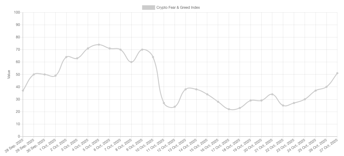 Kripto Korku ve Açgözlülük Endeksi verileri şu anda kripto piyasası hissiyatının “nötr” bölgede olduğunu gösteriyor.
