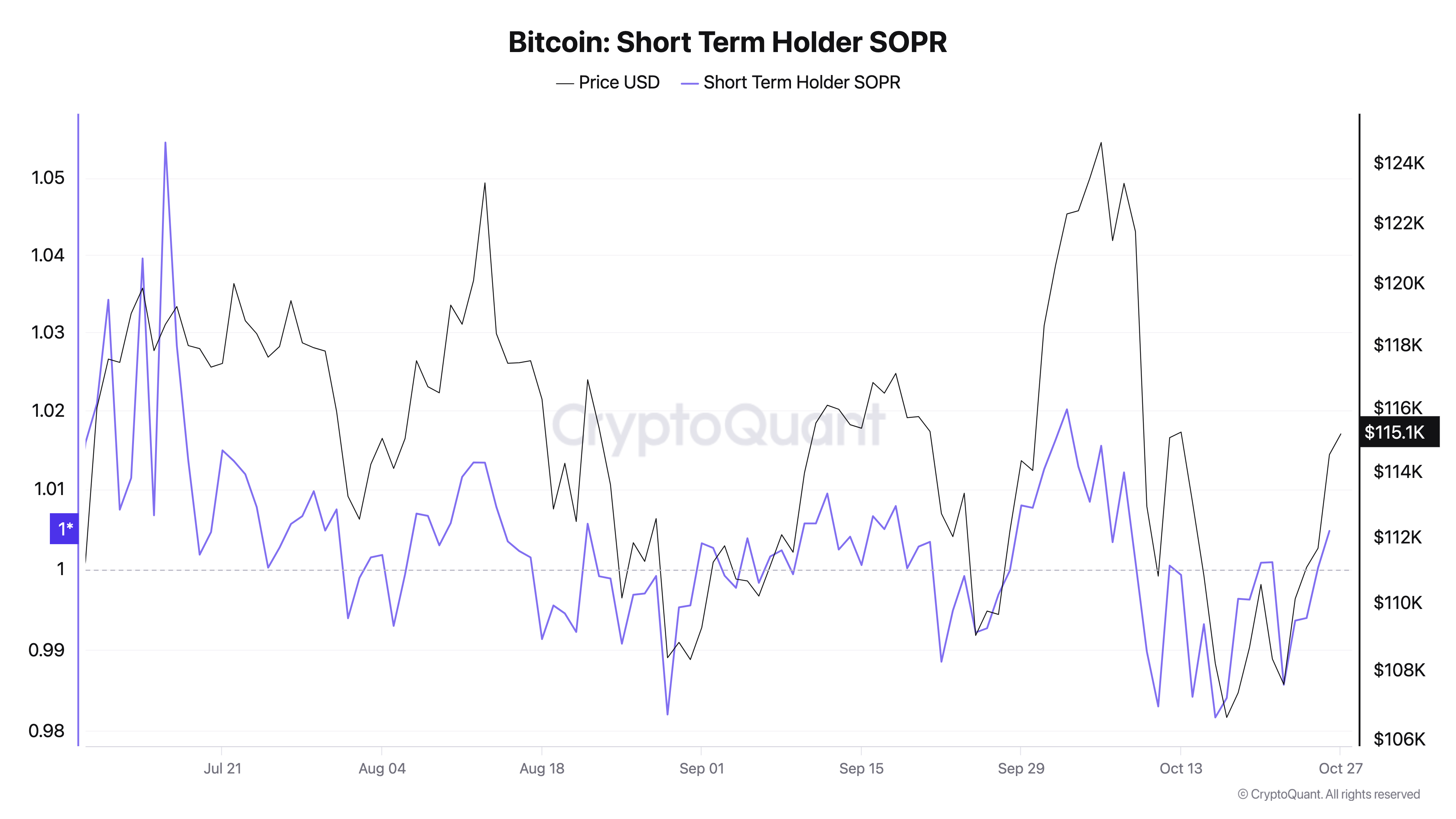 Zincir üstü analiz platformu CryptoQuant’tan alınan veriler, Kısa Vadeli Yatırımcı Kâr Oranının (SOPR) yeniden 1’in üzerine çıktığını ve 8 Ekim’den bu yana en yüksek seviyelere ulaştığını doğruluyor.