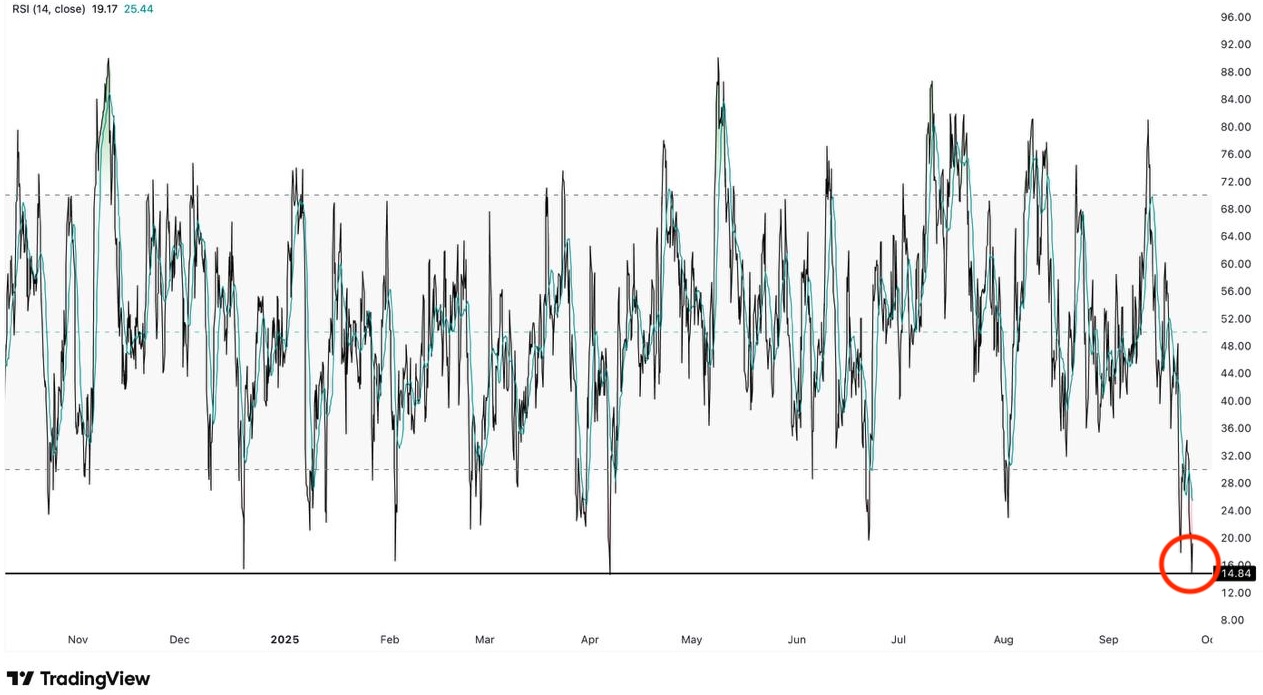“Son 10 yılda yalnızca 19’uncu kez, ETH’nin 4 saatlik RSI’si 15’in altına düştü. Nadir bir aşırı satım sinyali.”