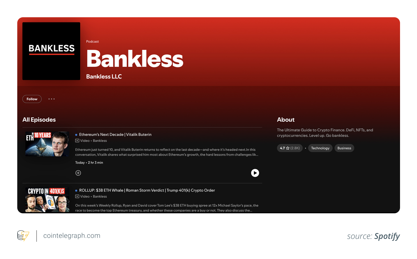 Örneğin “Bankless”, her ay yaklaşık 2 milyon podcast indirmesine ulaşıyor. Tipik bir sunucu tarafından okunan CPM (bin indirme başına maliyet) 25–40 dolar aralığındadır ve sponsor geliri, çoklu kanallarda (podcast’ler, YouTube ve bültenler) hızla büyüyebilir.