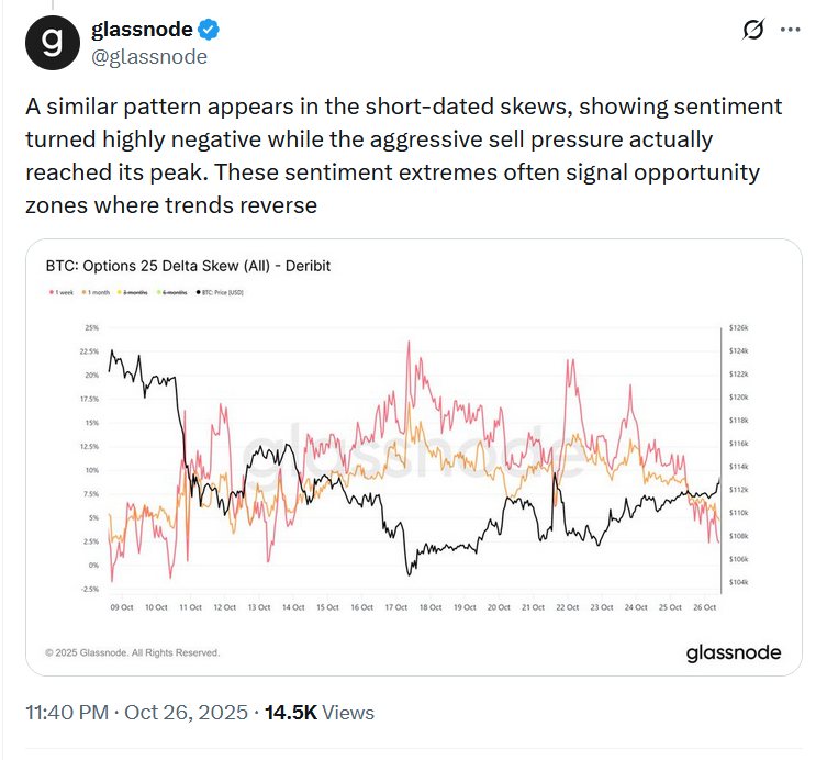 Glassnode, pazar günü X’te paylaştığı gönderide, satış baskısının ve olumsuz hissiyatın zirveye ulaşmış gibi göründüğünü belirterek bir trend dönüşünün işaretlerini verdi.
