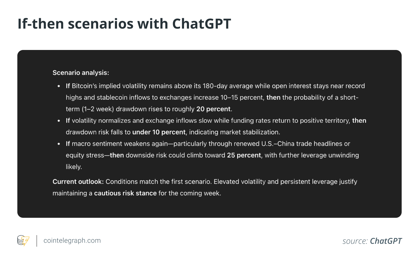Bu altı adımlı iş akışı 10 Ekim 2025’ten önce aktif olsaydı, muhtemelen çöküşün tam gününü tahmin edemezdi. Ancak stres sinyalleri biriktikçe risk derecesini sistematik olarak artırırdı. Sistem muhtemelen şunları gözlemlemiş olurdu: