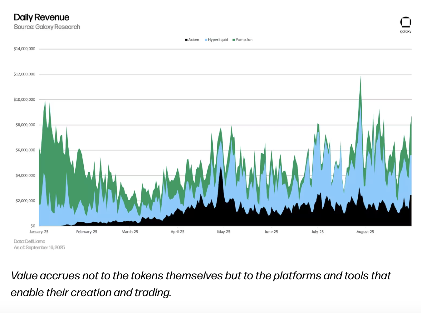 Galaxy Research’ün yeni raporuna göre memecoin’ler yeni kullanıcıları blockchain’lere çekebilir, ancak kârların büyük kısmı tokenleri başlatan ve alım satımını yapan platformlara akıyor.
