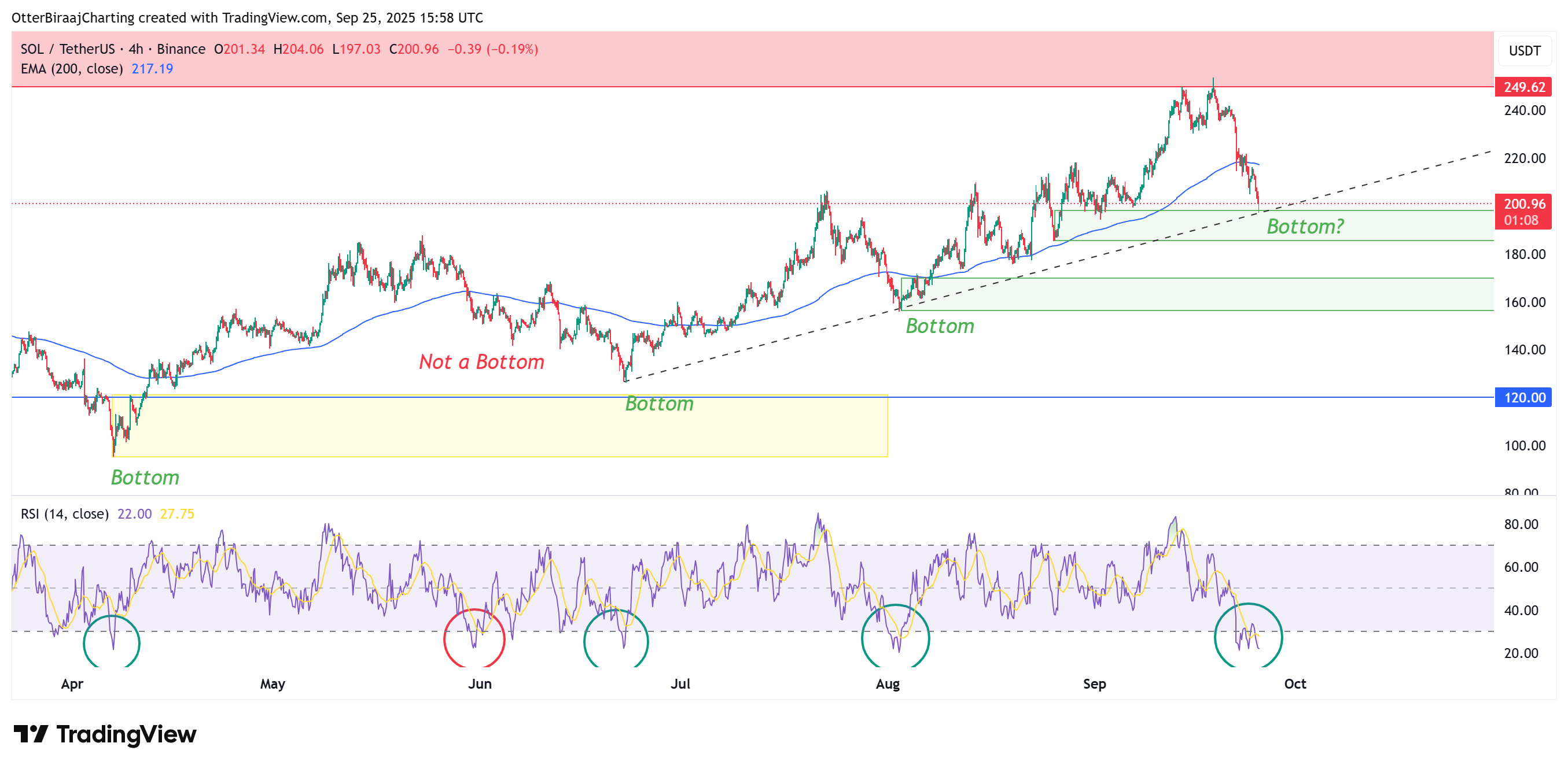 SOL dört saatlik grafik ve RSI dip analizi. Kaynak: Cointelegraph/TradingView