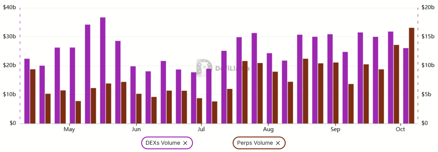 Haftalık Solana DEX (solda) ve vadeli işlem (sağda) hacimleri, USD. Kaynak: DefiLlama