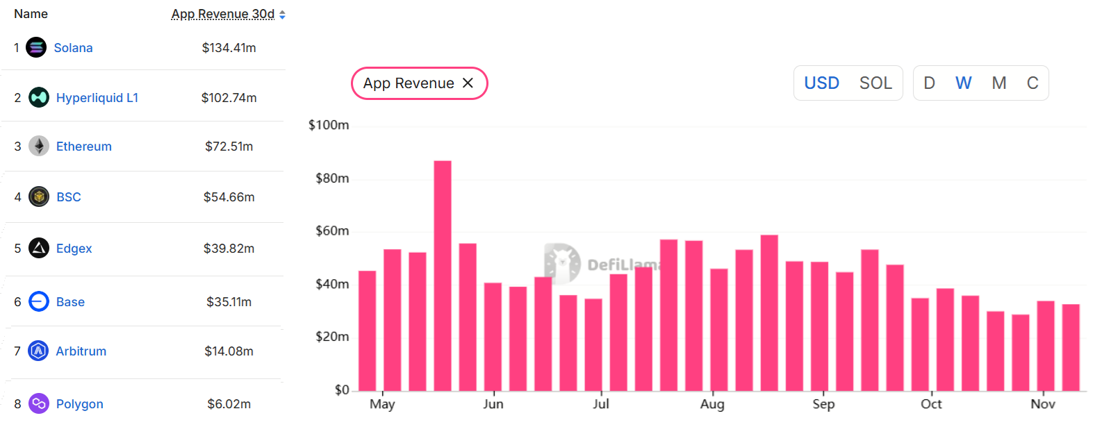 Solana, merkeziyetsiz uygulamalarda (DApp) gelir açısından hakimiyetini sürdürüyor. Başka hiçbir ağ bu seviyeye yaklaşamıyor ve bu durum Solana’ya sürdürülebilir bir rekabet avantajı sağlıyor. Bu DApp’ler, gelirlerinin bir kısmını getiri olarak paylaşarak kullanıcıları ödüllendiriyor. Bu mekanizma ağın daha fazla mevduat çekmesine ve konumunu güçlendirmesine yardımcı oluyor.