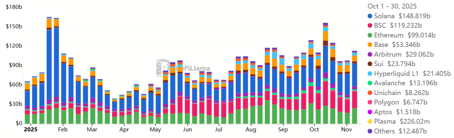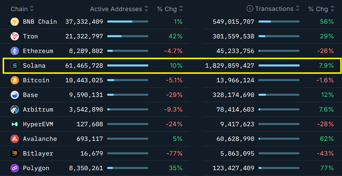 Son 30 günde Solana’daki ağ faaliyeti artış gösterdi; aktif adresler yüzde 10, işlemler ise yüzde 8 yükseldi. Karşılaştırıldığında, Ethereum aynı dönemde aktif adreslerde yüzde 5 düşüş ve işlemlerde yüzde 26 azalma yaşadı. Merkeziyetsiz borsa (DEX) alanında yükselen bir rakip olan Hyperliquid de zincir üstü faaliyetlerde yüzde 28’lik bir düşüş kaydetti.
