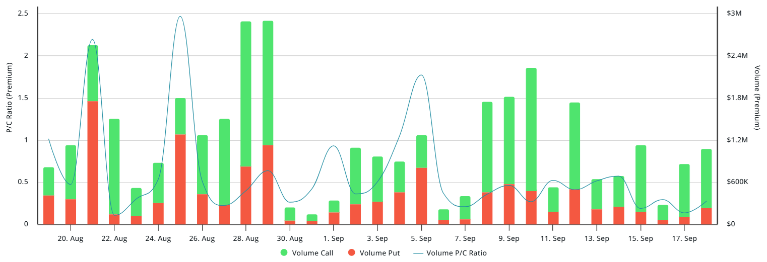 Zayıf yükseliş yönlü SOL talebinin sürekli kontratlarla sınırlı olup olmadığını belirlemek için opsiyon piyasasındaki aktiviteye bakmak gerekiyor. Kararlılık eksikliği genellikle put-call prim oranını yüzde 200’ün üzerine çıkarır ve bu da nötr-düşüş eğilimli stratejilere yönelik güçlü talebi gösterir.
